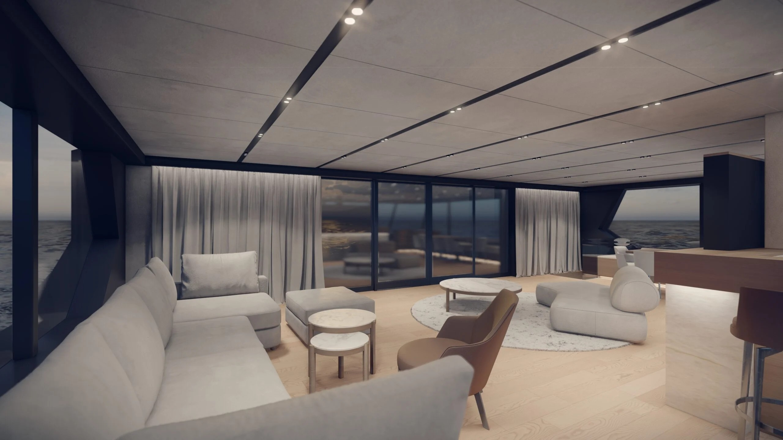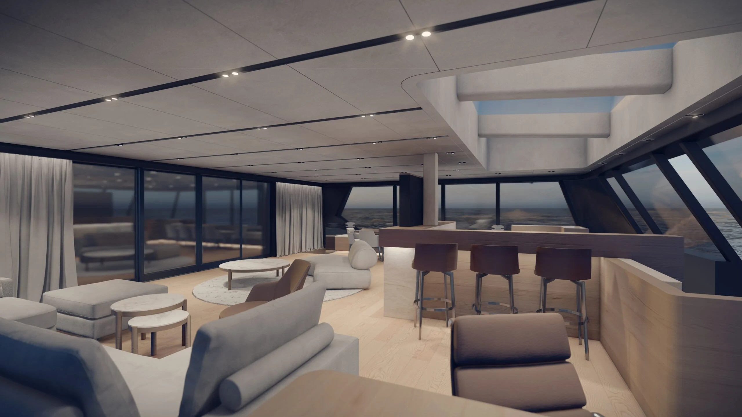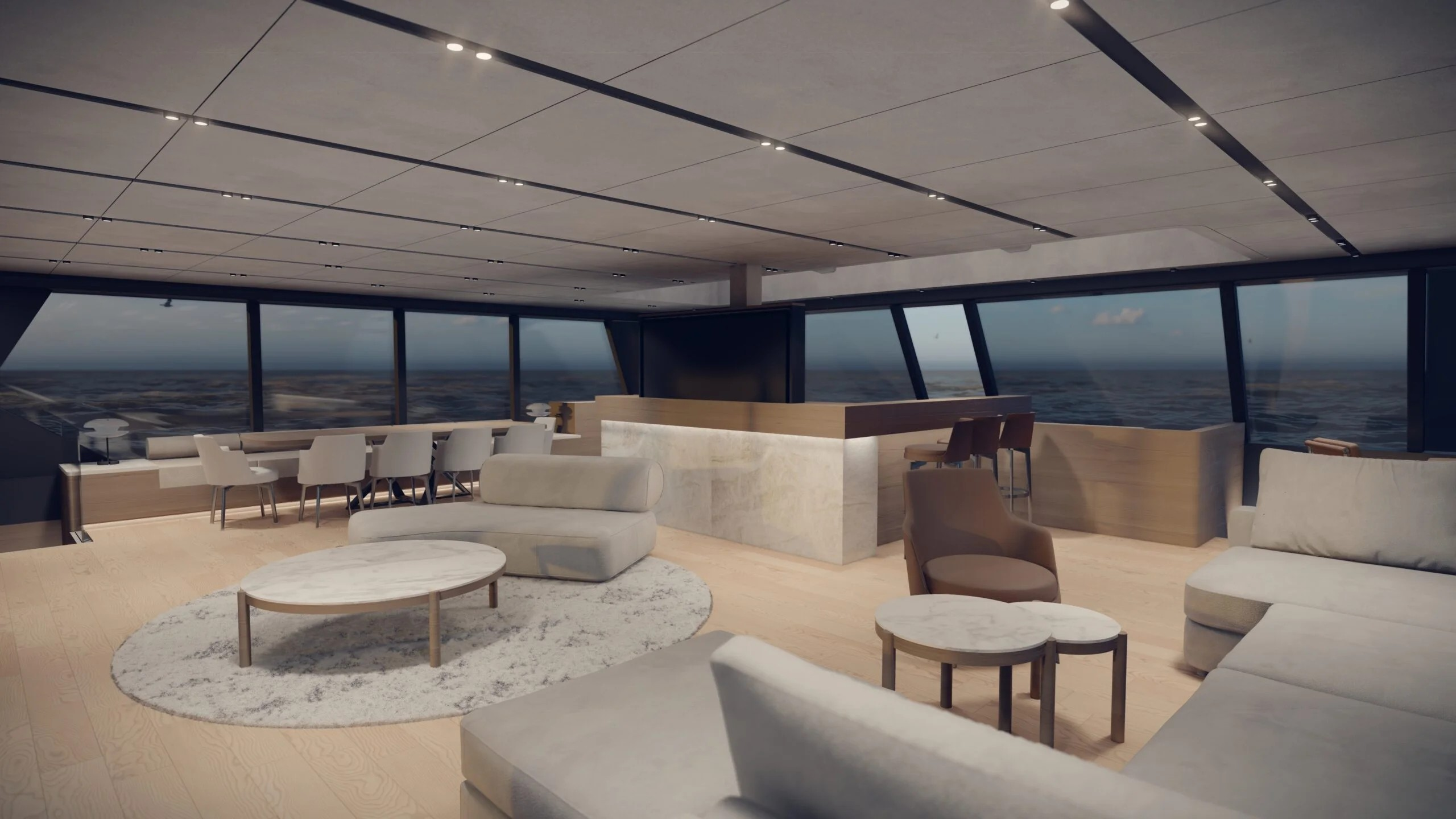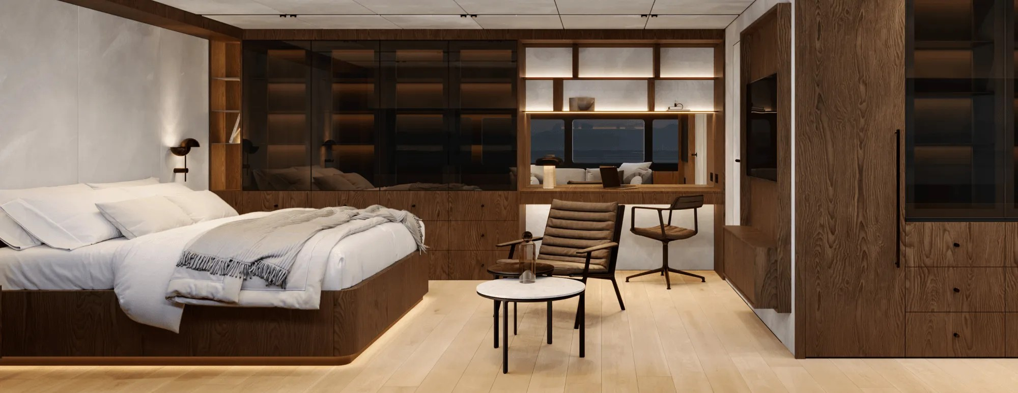 The Moon 9TY is a large vessel that requires professional crew service. With the owner’s comfort in mind, we have created a separate space for a 4-6 person crew, featuring its own entrance, kitchen, and comfortable living area, allowing the owner and all guests to maintain their privacy.